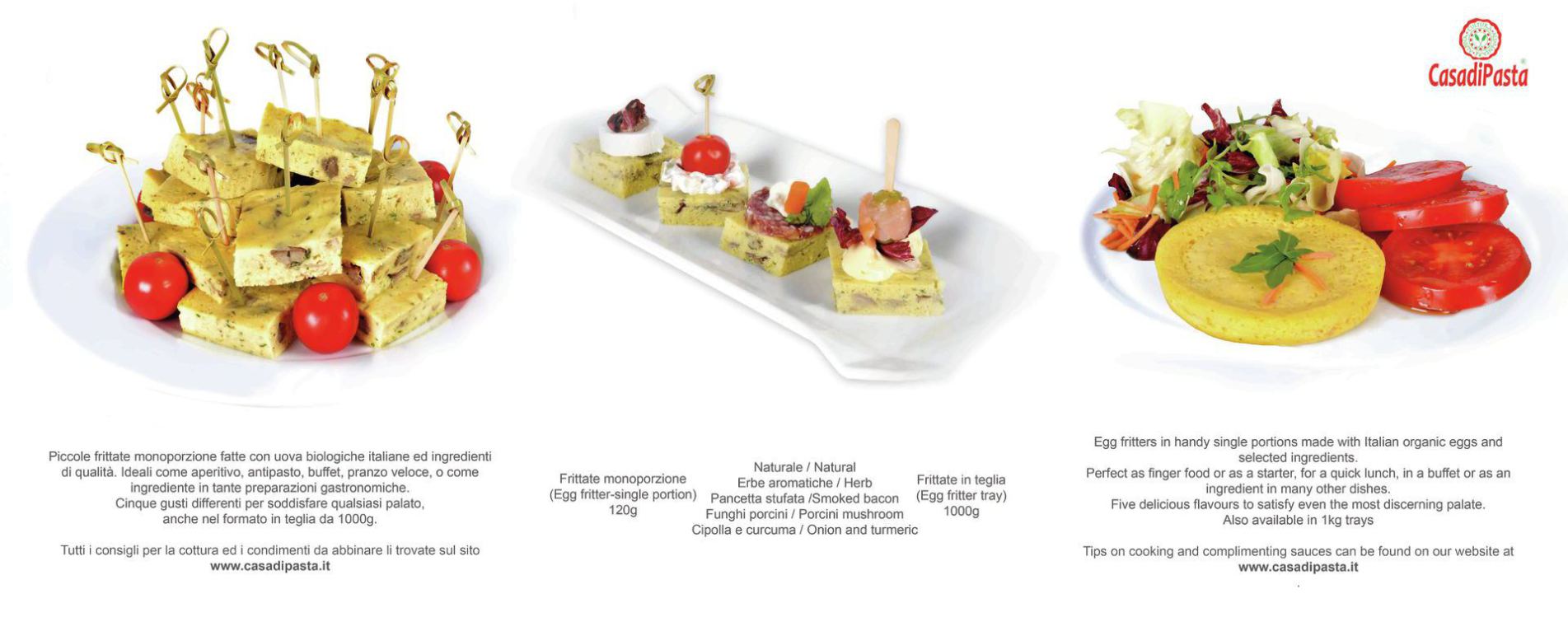 Gustose frittate fatte con uova biologiche italiane ed ingredienti di qualità.